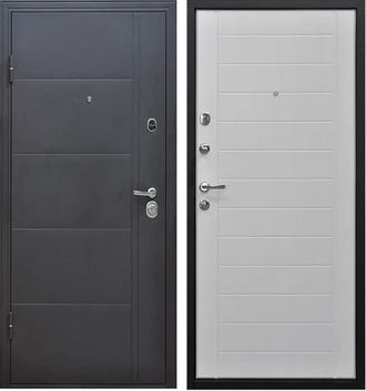 Цвет внешней стороны: Серый Графит. Цвет внутренней стороны: Венге, Беленый дуб. Основной замок:цилиндровый «Master Lock» с вертушкой; оборудован защитной врезной броненакладкой. Дополнительный замок: сувальдный «Master Lock». Толщина дверного полотная: 82 мм. Толщина стали: 1.2 мм. Внутренняя панель МДФ 12 мм. Звуко- теплоизоляция: минеральная плита. Три контура уплотнения. |